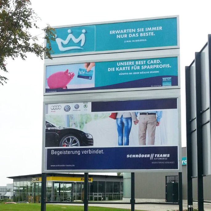 Schick gestaltete Textilrahmen wirken leucht und luftig. VETO bietet sie in verschiedenen Ausführungen an – von blickdicht bis effektvoll hinterleuchtet, vom Kleinformat bis zur Großfläche. Unsere Textilrahmen finden an jedem Ort Platz. Sie können frei gestellt werden oder zur Wandmontage vorbereitet werden. Die Textilrahmen für Stoffe mit Flachkeder produziert VETO freistehend (einseitig oder beidseitig) oder zur Wandmontage. Textilrahmen sind für den Innenbereich die richtige Wahl. Ein Austausch des Stoffes – etwa zum Motivwechsel – ist einfach zu realisieren und kostengünstig.